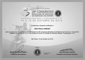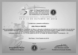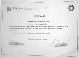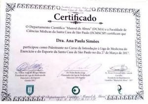 Confira o certificado de palestrante da Dra. Ana Paula Simões no Curso de Introdução à Liga de Medicina do Exercício e do Esporte!