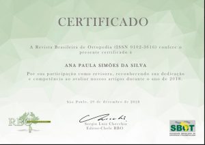 Confira o certificado de revisora da Dra. Ana Paula Simões na Revista Brasileira de Ortopedia.