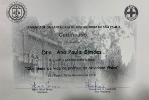 Confira o certificado de palestrante da Dra. Ana Paula Simões na Irmandade da Santa Casa de Misericórdia de São Paulo.